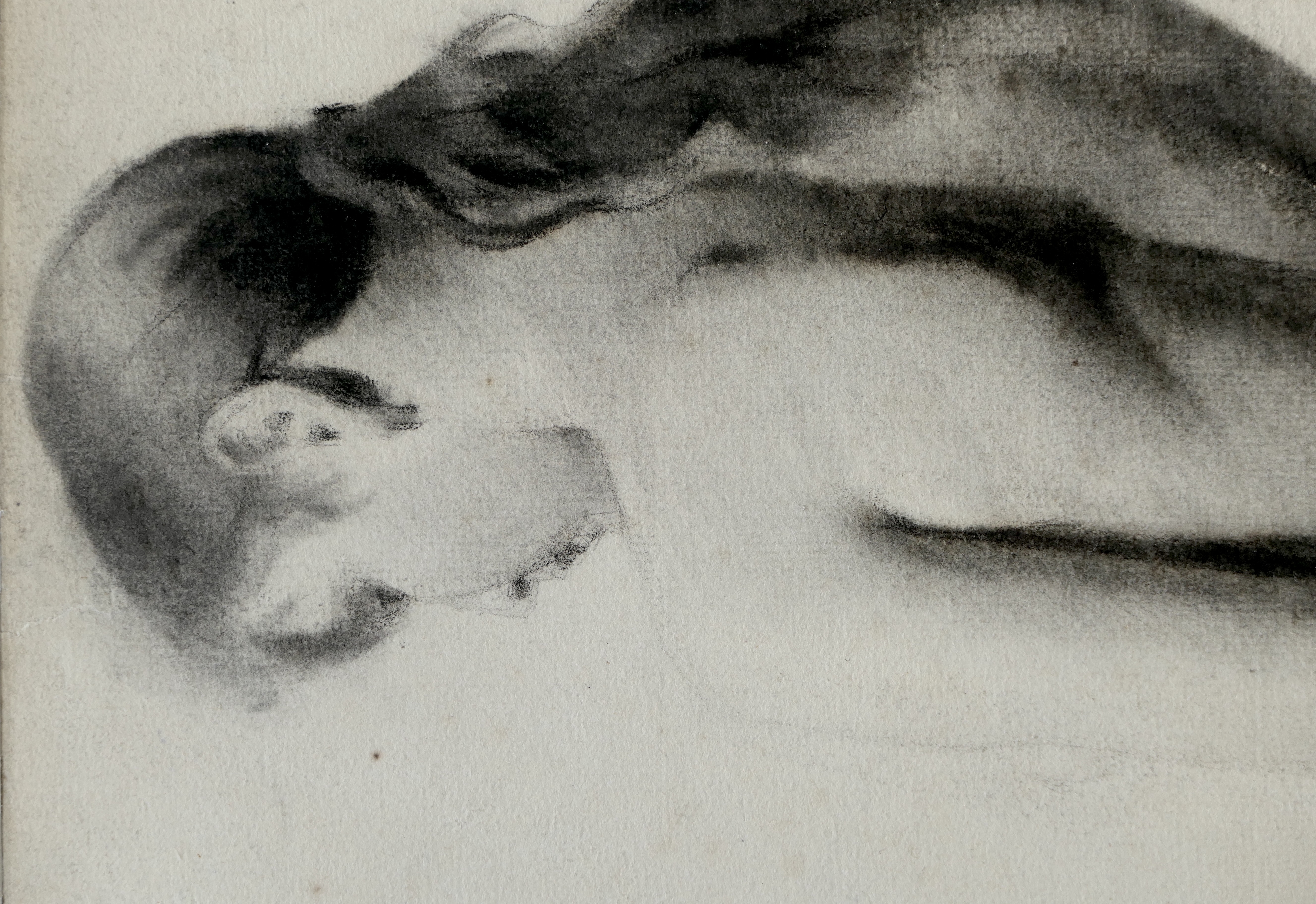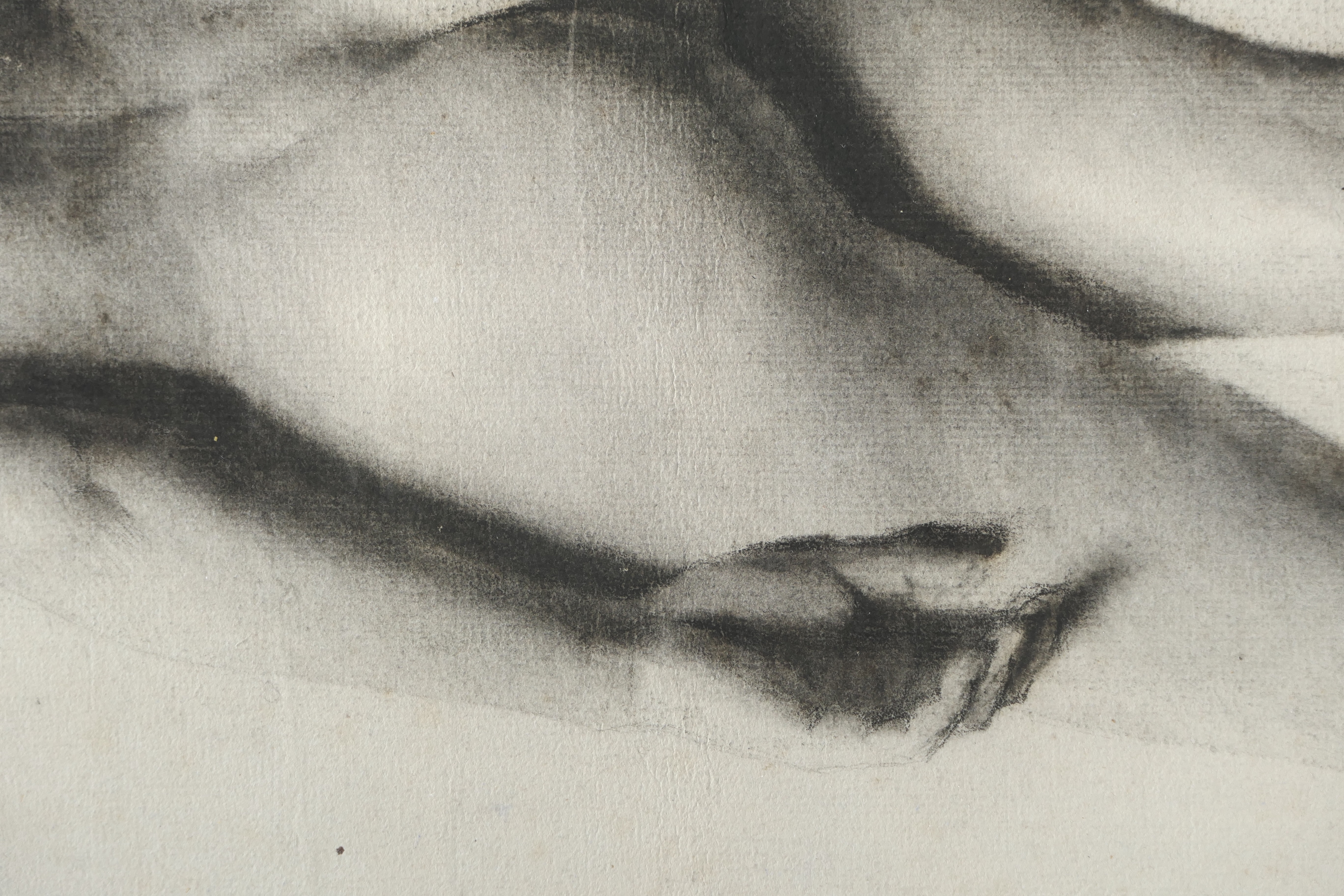 This beautiful and subtle charcoal ‘academie’ life drawing dates from Steer's period of study in Paris, at either the Académie Julian, where he was in 1882-3, or the École des Beaux-Arts in 1883-4. There are relatively few paintings and relatively little correspondence dating from Steer's time in Paris, and no other academie drawings that we are aware of. It is on watermarked handmade Michallet paper, which came in a single size of 515 x 360 mm, with a tight grain that held charcoal well, making it very popular for life drawing in the Parisian art schools. Augustus John is reported to have commented on its use at the Slade, and D.S. MacColl noted that Steer retained a stock of Michallet paper for his later watercolours.