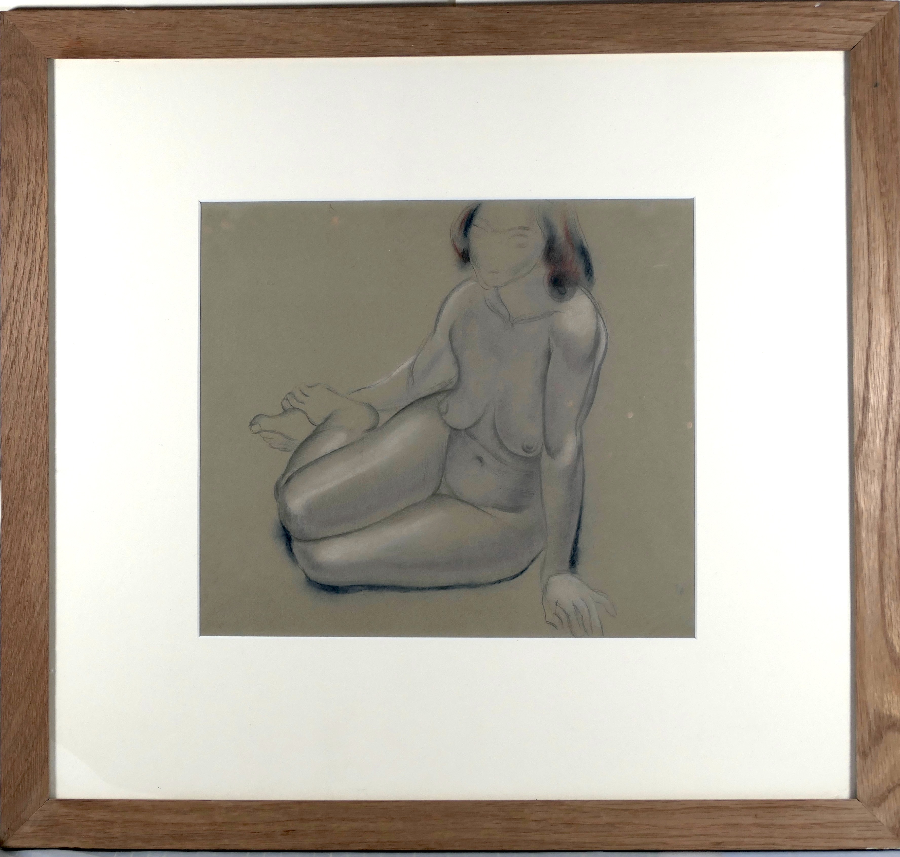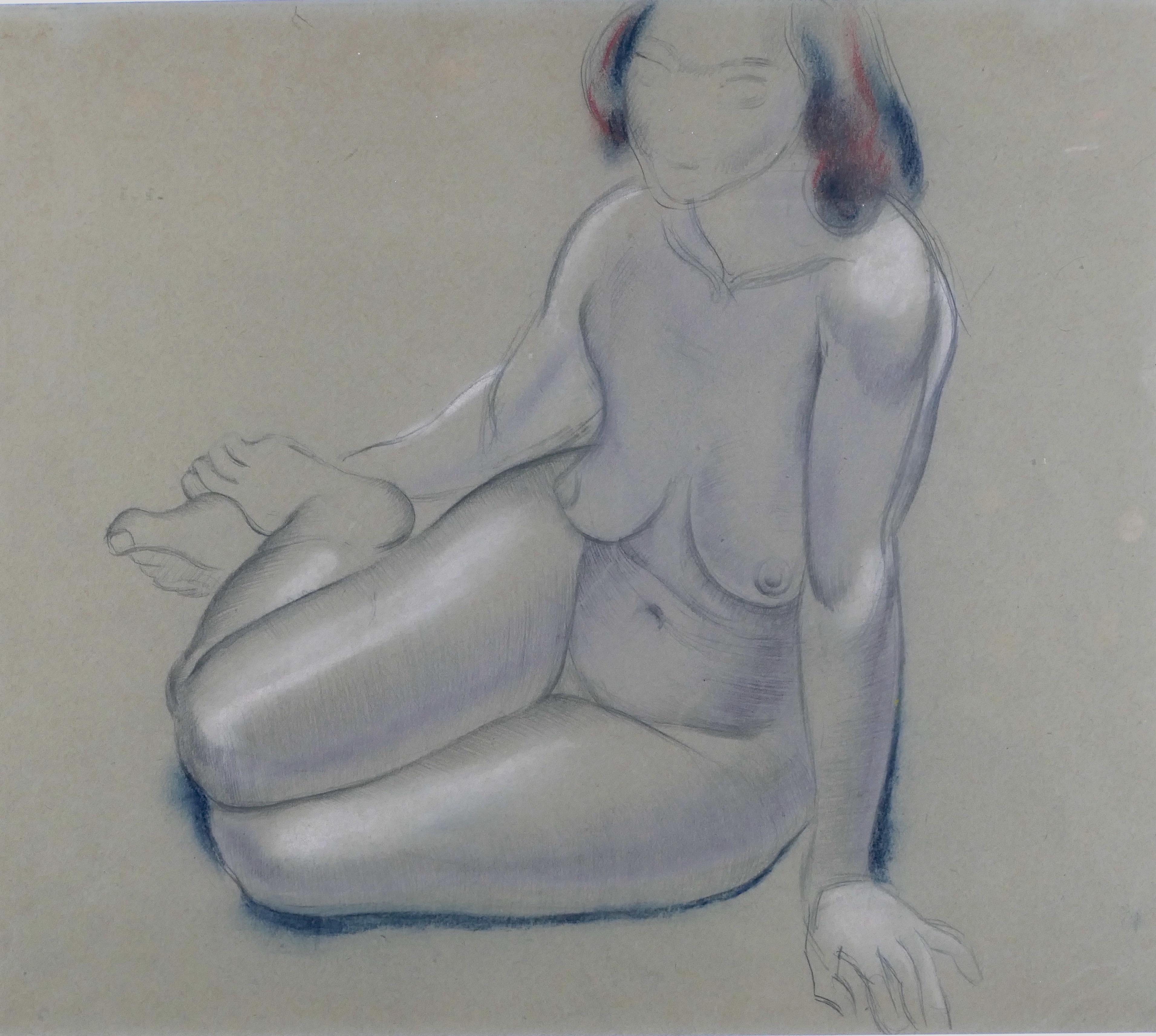 In 1920, Dobson met Wyndham Lewis, who was forming the short-lived GroupX in an attempt to revive the pre-war Vorticism movement. Dobson exhibited as a member of the group in its show at the Mansard Gallery, in Heal's department store, from 27 March to 24 April that year. Other exhibitors included Lewis, Etchells, Ginner, Dismorr and Wadsworth. Much of Dobson's early work on paper was destroyed when his Chelsea studio was bombed in the Blitz. Fairly subtle and subdued compared with his later, and more vivid drawings, this study is beautifully observed and modelled with a sculptor's eye, and drawn with the artist's assured, descriptive outline. It is also, in the most part, highly finished: before 1920, Dobson's drawings were largely created as an end in themselves, rather than as studies for sculpture, like most of his later works on paper. His first solo exhibition, at the Leicester Galleries in November 1921, included eight drawings described as nude studies.
