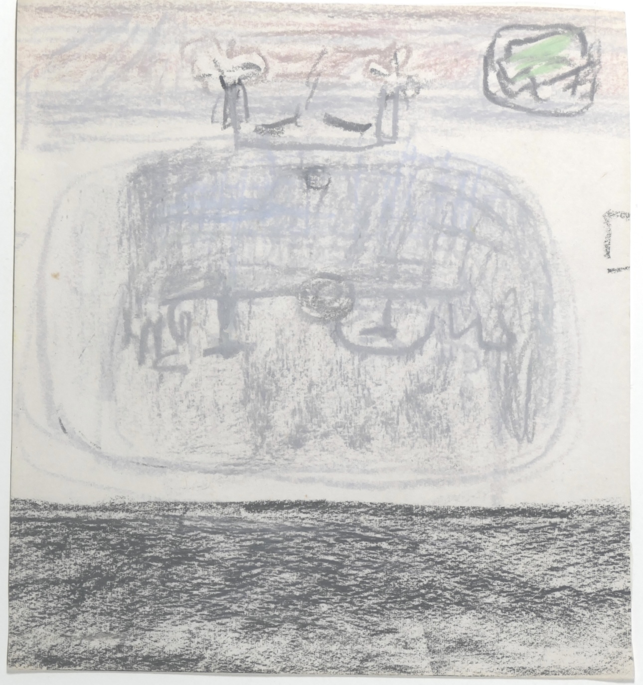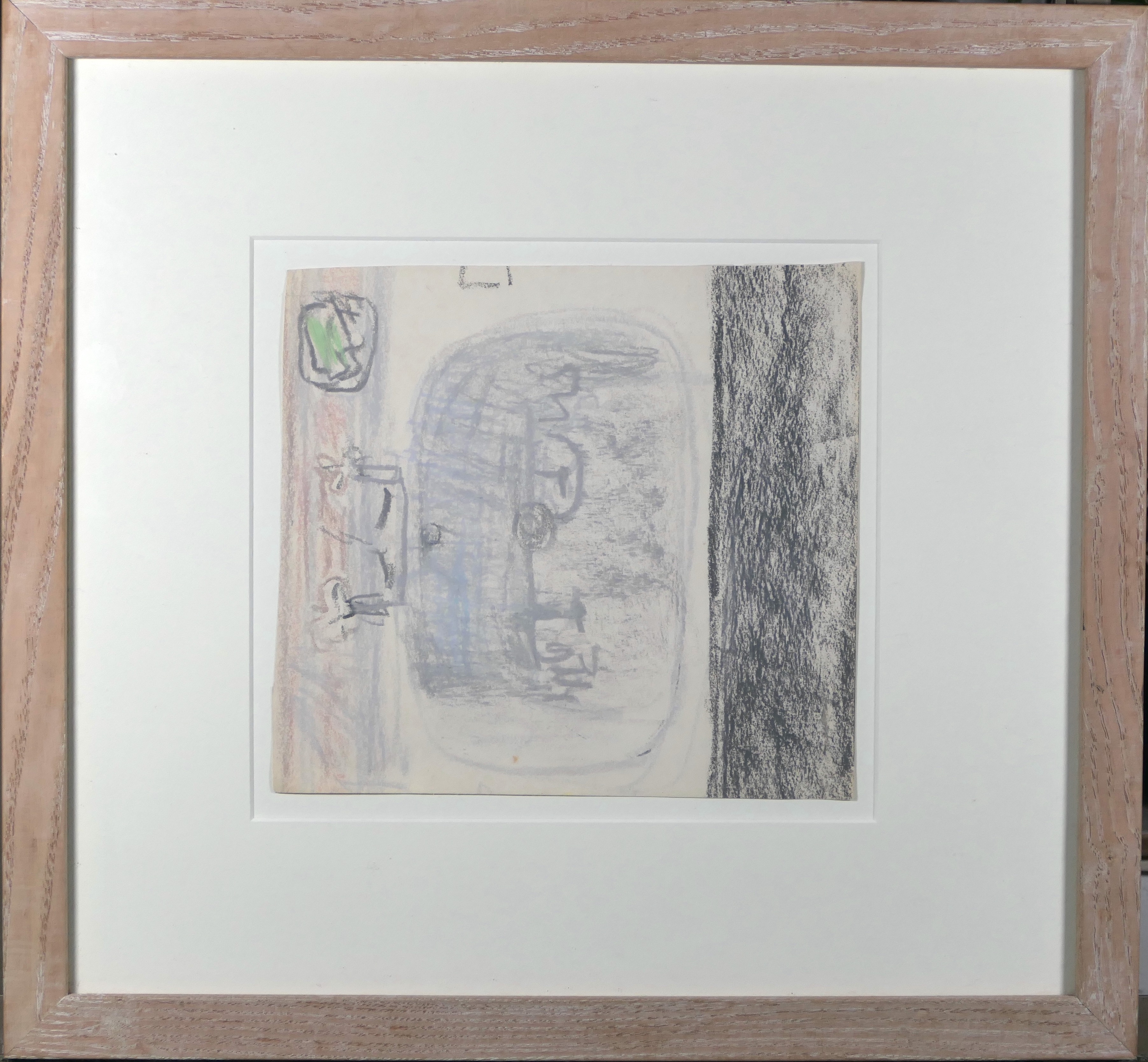 This sketchbook drawing relates to a watercolour study sold at Gorringe's on 2 September 2024 (lot.. 1738), and a painting in oils with wax and turpentine medium shown at the retrospective exhibition, 'Mary Potter Paintings 1922-1980' (Serpentine Gallery, 23 May - 28 June 1981, catalogue no. 72, collection John Trew). In all three works, it is the reflection of the taps in the half-full sink and the consequent tonal pattern that is the true subject of the work. At this late stage in her life, much of Potter's work was concerned with her immediate surroundings, including the kitchen sink.